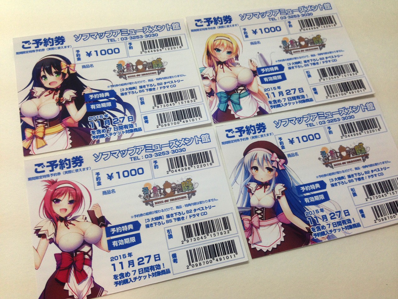 アキバ☆ソフマップ1号店さんではヒロイン別の特殊予約券がご用意されております!